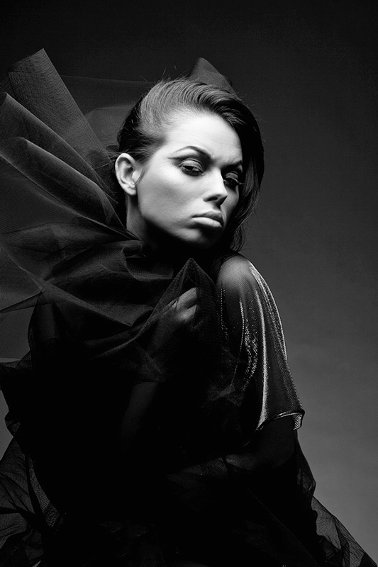 Jak zobaczyłem tą charakteryzację na sesja zdjęciowa, pierwsze myśli i skojarzenia powędrowały w stronę czarnej wdowy a chwilę później zobaczyłem wizję wampirzycy rodem z Transylwanii. Już na jednym portalu pisałem, że zabrakło mi tu tylko wystających białych kłów i kropli krwi spływającej z kącika ust :) Mimo wszystko Agnieszka R. przygotowała świetną stylizację, która gdzieś w mojej głowie zasiała nową inspirację i ziarenko pomysłu na przyszłą sesję. Mam nadzieję, że jeszcze w tym roku uda mi się znaleźć jakoś wampirzycę, którą uraczę krwawą merry ;) W rolę damy w czarni [lady in black] wcieliła się świetna modelka Sylwia Nawrat.