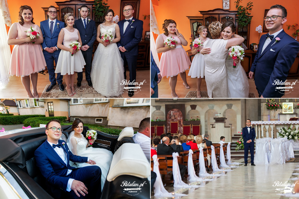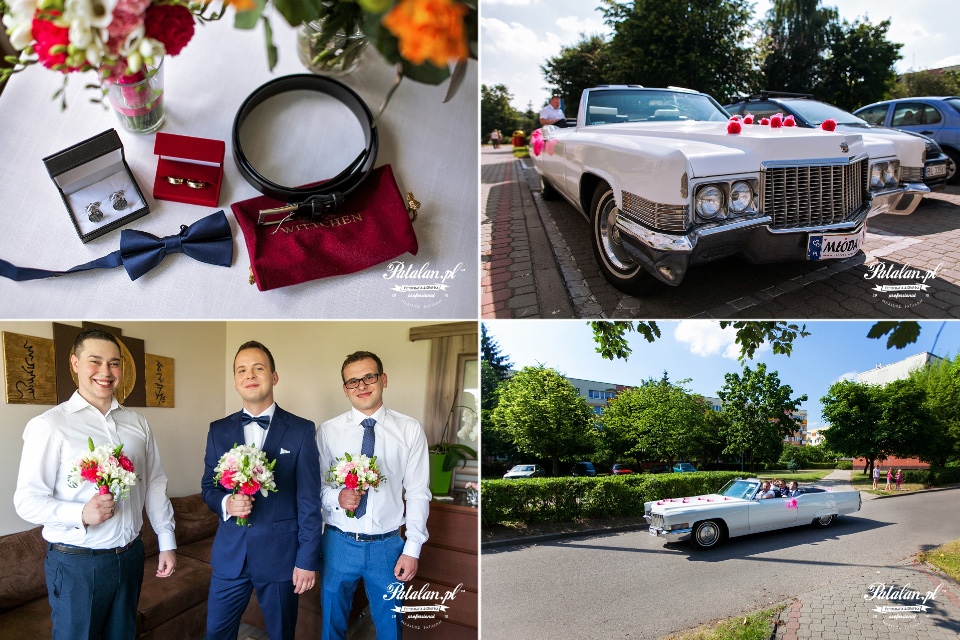 Chwilę później przemieściłem się do Roberta, który czekał już podekscytowany na spotkanie z przyszłą żoną. Przed blokiem zaparkował już zabytkowy biały Cadillac Deville z 1970 roku. Piękna słoneczna pogoda pozwoliła aby Para Młoda jak przystało na kabrioleta przemieściła się ulicami miasta do Kościoła z otwartym dachem. Ceremonia ślubna odbyła się w Sanktuarium Miłosierdzia Bożego w Łomży. Dostojnym wejściem i prowadzeniem Panny Młodej do ołtarza przez tatę, rozpoczęła się piękna ceremonia zaślubin.