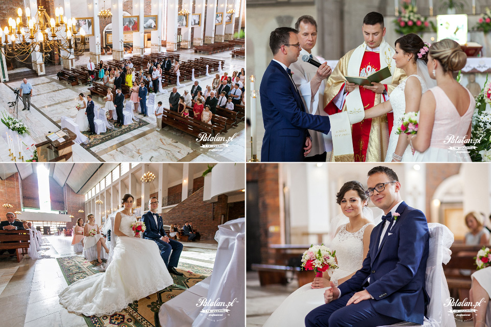 Jedynym minusem tego Kościoła jest jego wielkość. Dla przyszłych Par Młodych, które planują w nim ślub warto podpowiedzieć, aby wszystkich gości oraz rodzinę zaprosić do pierwszych ławek przy ołtarzu. Nada to na pewno podniosłości, bliskości przeżywania tego ważnego dnia z Parą Młodą oraz zrobi się kameralniej na zdjęciach. Dobry fotograf ślubny musi sobie radzić w każdych warunkach dlatego, akurat wybrane zdjęcia są tak skadrowane aby nie było widać tych dużych pustych przestrzeni między ławkami.
