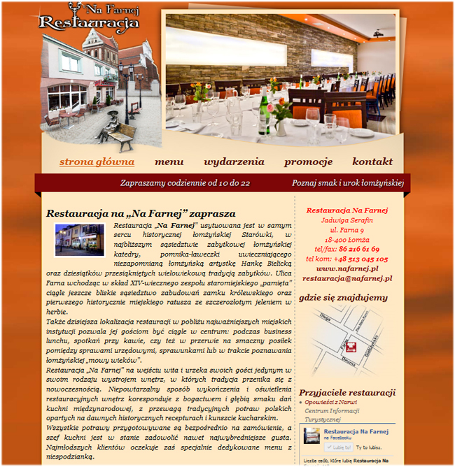 Jakiś czas temu miałem okazję już robić zdjęcia do folderów reklamowych i na stronę internetową dla jednej z łomżyńskich pizzerii oraz produktów do folderu promocyjnego dla hurtowni spożywczej. Natomiast ostatnio podjąłem się zadania zgromadzenia zdjęć dla Restauracji ‘Na Farnej’. Zdjęcia wykorzystane zostały do stworzenia strony internetowej restauracji, ulotek reklamowych i menu oraz pojawiły się w reklamie na telebimach w Łomży. Przyznam, że zdjęcia reklamowe to wcale nie taka prosta sprawa i wymaga sporej wiedzy, czasu, przygotować, umiejętności oraz odpowiedniego sprzętu… ale cieszę, się że mogłem podjąć się tego zadania.