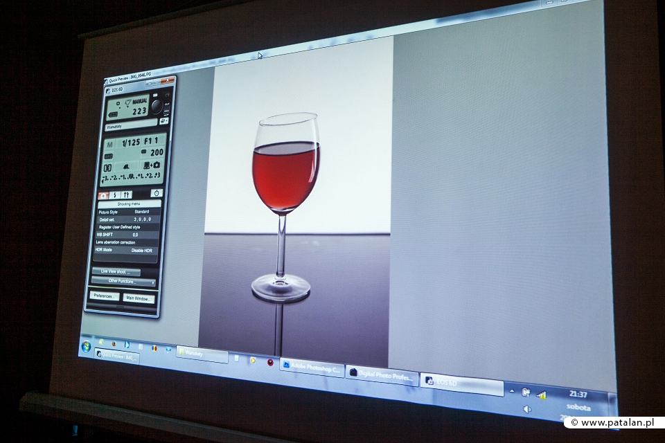 Po obiedzie rozpoczął się blok warsztatowy “Fotografia produktu”, którą poprowadzi Paweł Klein. Jednogłośnie zapewne każdy był zachwycony prezentacją i wiedzą jaką przekazał nam Paweł. Tematyka poruszała problematykę oświetlania niestandardowych obiektów na przykładzie czarnych, szklanych opakowań kosmetyków. Także skuteczna fotografia butelek z alkoholem w wirującymi płatkami złota. Na koniec udało się także zrobić setup wielopunktowego oświetlenia w portrecie modowym w którym zastosowaliśmy niestandardowe techniki oświetleniowe. Wcześniej widziałem podobne efekty na zdjęciach kilku zaledwie fotografów jednak nie bardzo mogłem dowiedzieć się jak powstały zdjęcia. Po tych warsztatach moje spojrzenie zupełnie się zmieniło i przyznam, że warto było się wybrać na ten zlot przynajmniej dla tej wiedzy. Wieczorem udaliśmy się na relaks i odpoczynek do jacuzzi i sauny w tajnych lochach ośrodka…