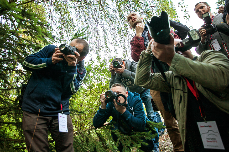 Wcześniej wspomniałem, że mieliśmy odpocząć? Hm… no cóż, jak to mówią – chcieliśmy dobrze, wyszło jak zawsze… Nasza grupa mało spała bo się całą noc integrowała. Jednak na śniadaniu byliśmy pierwsi. W miedzy czasie zaczęli zjeżdżać pozostali uczestnicy canon-board.info. Do godziny 14 zdążyło odbyć się oficjalne rozpoczęcie, wydanie identyfikatorów, sprawy organizacyjne i pierwsze wypożyczenia sprzętu do testowania. Po obiedzie rozpoczął się pierwszy blok warsztatowy o tematyce “Fotografia ślubna”, którą poprowadzili Krzysztof Tkacz i Sebastian Małachowski. Tematyka obejmowała reportaż w aspekcie fotografii ślubnej – doświadczenia w pracy fotografa oraz praca z modelkami w plenerze – komunikacja i zbudowanie relacji podczas zdjęć.