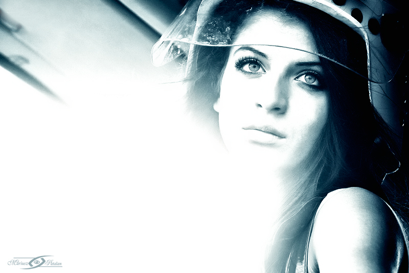 Utrudnieniem w robieniu takiej sesji był ogień i woda. Te dwa żywioły, które trzeba było okrzesać w tym samym czasie jednocześnie. Ogień – ciągle się zmieniał i rozprzestrzeniał, Woda – zimna i mokra, do tego była wszędzie począwszy od mojego obiektywu na rozmazanym makijażu modelki skończywszy. Na szczęście moja stylistka skutecznie zapobiegała takim utrudnieniom a modelka czasem ze strachem w oczach dzielnie znosiła dyskomfort pracy. Dziękuje Wam dziewczyny! Duże podziękowania należą się również Panu Kazikowi, który z ramienia Straży Pożarnej poświęcił swój czas i pomoc w przygotowaniu sprzętu oraz małej warsztatowej lekcji strażackiej dla Madzi.